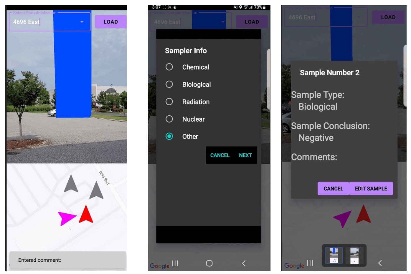 During the summer of 2022, I worked at DCS Corporation as a software engineer. My first project of the summer was creating 3D assets for a virtual reality software used by the military called Virtual Tactical Assault Kit. Then, I helped debug and add functionality to an android application used to read and track radiation sensors. I also worked on developing extentions to an another military application called Android Team Awareness Kit. Finally, I developed a brand new augmented reality application used to create sampling missions for ground troops in areas effected by hazardous warfare. More info on this can be found below.