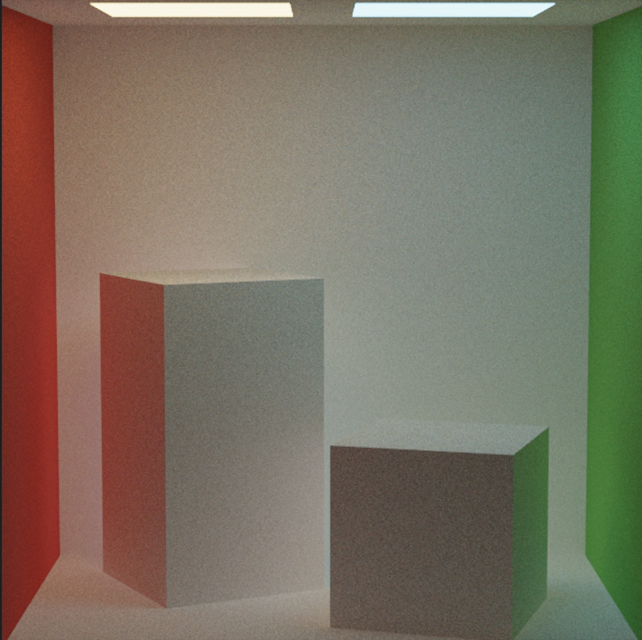 Then, I implemented light source sampling, which bounces rays once directly towards a light source, checking for visibility to that light source. I was then able to combine both of these implementations into a multiple imporance sampling
